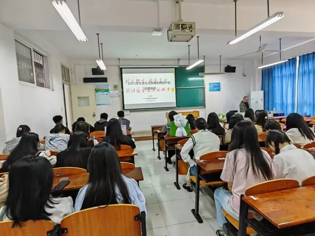 樊勇分别从就业指导、就业推荐以及其他事项三个方面细致地对全体毕业生进行指导。首先,他提醒同学们,求职被拒不一定是你的错,要调整好心态,不断提高实力。就业推荐部分,他从专业特点和特色切入,以襄阳市智投汇文综合高中有限公司等单位为例,帮助同学们梳理招聘条件和应聘程序,加强对就业形势的认识与了解。最后,樊勇强调了毕业生信息核对等其他事项。