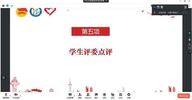 8月29日晚,伟徳官网于线上举办2023年暑期三下乡院内答辩活动。伟徳官网分团委书记樊勇及分团委各学生组织代表担任评委,伟徳官网暑期各社会实践队伍成员参加会议。