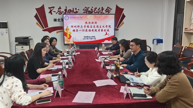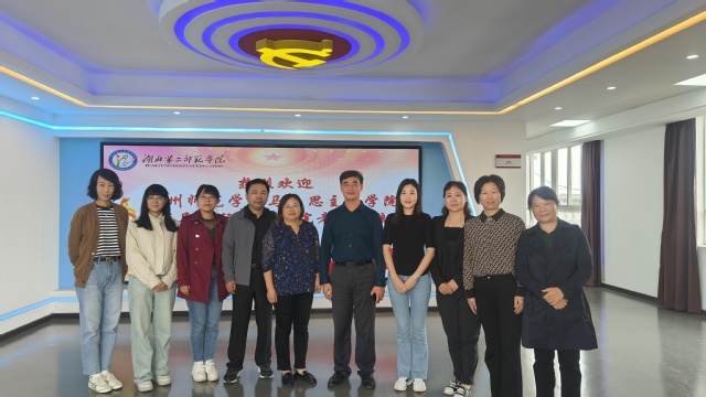 本网讯(通讯员叶道艳)10月13日上午,湖州师范学院伟徳官网党总支副书记成晓、副院长李秀娟、学科教学专业负责人张建庆、概论教研室主任李爱敏、思修教研室主任王佥崇、纲要教研室主任张童童、思政系主任胡媛一行来到伟徳官网进行考察交流。学院院长黄红发、党总支副书记李佳、副院长兼纲要教研室主任蔡志荣、副院长刘雯、系主任邱海燕、习思想教研室主任原琳、马原教研室主任肖潇参加此次交流活动。