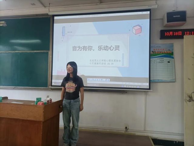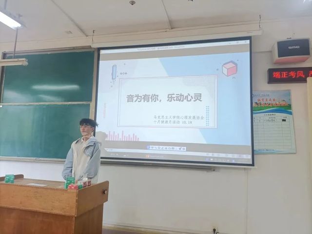 在明信片上写下自己喜欢的歌词之后,同学们踊跃发言,分享音乐曾经治愈自己的故事。台上的同学分享着自己的故事,台下的同学都静静的听着,氛围很好,反响也很热烈(´▽`)ノ♪