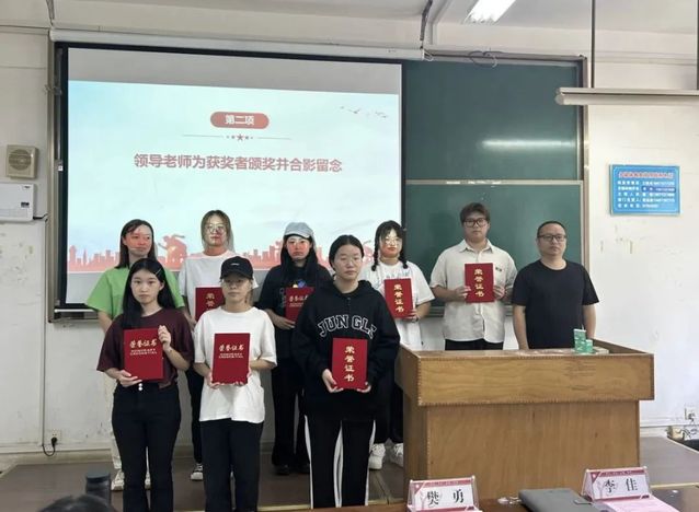 许俊成等6位同学荣获“校级优秀运动员”称号;旦增赤列等5位同学荣获“院级优秀运动员”称号;丁润西被评为“校级优秀工作者”;毛子豪等5位同学荣获“院级优秀工作者”称号;祝雨洁被评为“校级优秀通讯员”;郭依帆等两名同学荣获“院级优秀通讯员”称号。疾风三十一团队获特别贡献奖。李佳、樊勇为获奖者颁奖并合影留念。