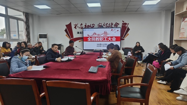 副院长蔡志荣传达学校《关于开展2023年度科研工作量统计工作的通知》,要求教师统计2022年12月16日至2023年12月5日以来的科研成果,认真填写科研工作量登记表并提供相应证明材料。副院长刘雯传达《学校2023-2024学年度上学期期末教学工作安排》,要求全体教师认真落实教学各个环节,并做好期末教学、课程考核、毕业论文指导等工作。党总支副书记李佳传达《BV伟德官方网站关于进一步加强大学生学风建设的实施意见》文件精神,汇报学院2023年学风建设宣传月活动方案和已实施的活动内容。