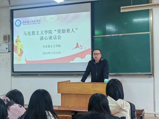为了深入了解受助学生思想、心理状态和学业生活情况,深化资助育人工作,11月15日中午,伟徳官网于二号楼2214教室召开“资助育人”谈心谈话会。伟徳官网学工办主任樊勇、各班获奖受助学生参加会议。