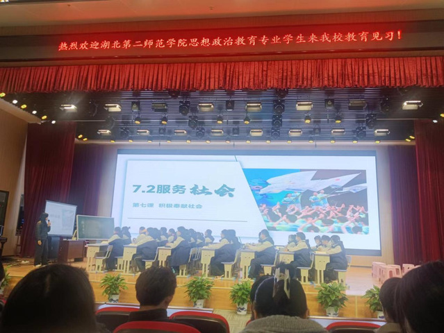 本网讯(通讯员邱海燕)为了培养师范生的教育情怀和教育创新意识,提高师范生的专业素养和教学能力,12月12日下午,伟徳官网组织2022级思想政治教育专业全体学生开展了教育见习活动。在马院副院长刘雯、党总支副书记李佳及尚峰、邱海燕、孔凡敏等老师带领下,同学们来到武汉市光谷第四初级中学观摩见习,真切接触到初中思政课教育教学真实情境,从中收获了丰富的教育理论知识和教学实践经验。