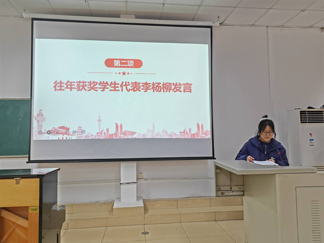 会议伊始,严佳骐介绍挑战杯赛事并指出挑战杯大赛是导向性、示范性和群众性的创新创业竞赛活动。接着,往年获奖学生代表2021级思想政治教育1班李杨柳发言,她把自己的经验总结成“两心”和“四多”两个方面,鼓励同学们树立信心,多问、多想、多模仿、多完善。