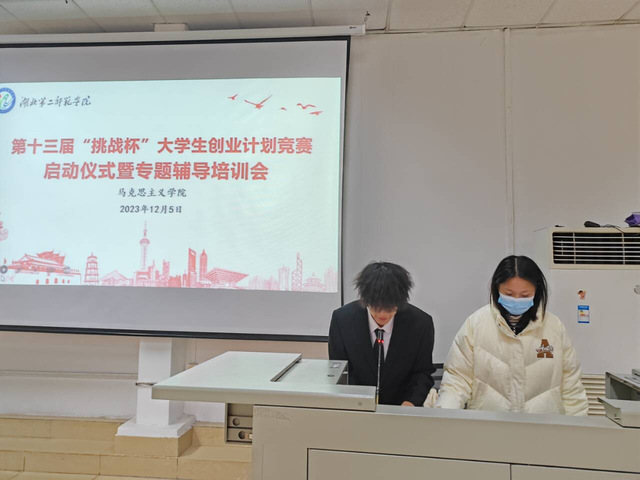为了培养创新意识、启迪创意思维、提升创造能力、造就创业人才,12月5日中午,伟徳官网举办第十三届“挑战杯”大学生创业计划竞赛启动仪式暨专题辅导培训会。伟徳官网党总支副书记李佳,学工办主任樊勇,2022、2023级思想政治教育专业全体学生参加会议。2022级思想政治教育1班严佳骐担任主持人。