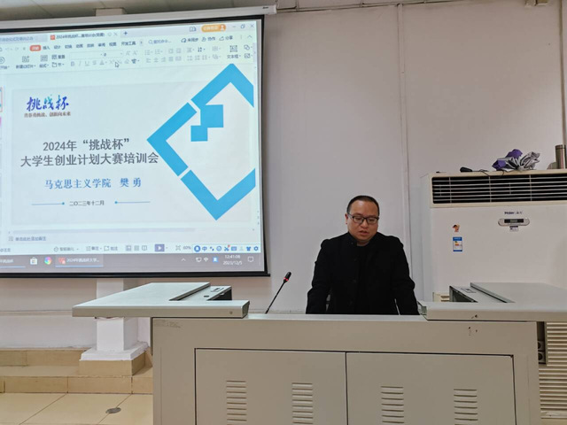 随后,李佳致辞并宣布活动开始,她希望每位同学能通过挑战杯大赛深入开展社会实践,增强对国情的了解,激发创新精神。最后,樊勇做比赛专题辅导培训,他首先向在座学生介绍“挑战杯”赛事的具体情况并强调参赛作品应选好题材,与社会热点相结合,发挥思想政治专业优势。