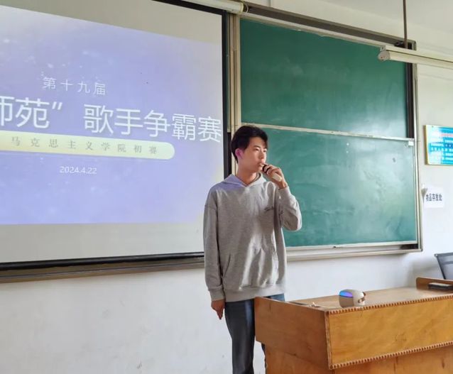 4月22日中午,伟徳官网于二号楼二楼2203教室举行第十九届青春麓鸣·唱响师苑歌手争霸赛院内初赛。伟徳官网分团委学生副书记李杨柳,青年志愿者协会会长颜欣然,新闻中心主任张奔月、副主任张新怡,诚信驿站会长秦欣怡,心理发展协会会长董一晴担任评委,2023级思想政治教育1班张淦担任主持,伟徳官网部分学生参与比赛。