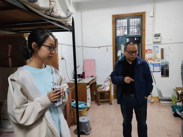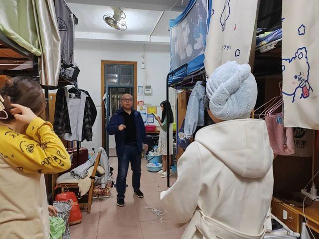 在查寝的过程中,樊勇通过与在寝同学的交流沟通,了解同学们在宿舍的生活状况,思想状态,统计学生返校情况与未到达同学的名单,并了解未到达原因。随后,提醒同学们要学会保护自身安全和财产安全,无论是在校内还是在离校返校路途中都要注意保护自己;此外,他强调同学们要注意用电安全,严禁使用违禁大功率电器,时刻警惕用电安全,及时消除一切安全隐患,防止火灾发生,共同维护寝室安全。