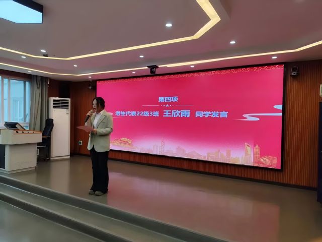 随后,老生代表2022级思想政治教育3班王欣雨提倡同学们要做时间的“驾驭者”,探索的“无畏者”和使命的“担当者”,以实干的精神、担当的态度,在伟徳官网书写更加精彩的人生篇章!