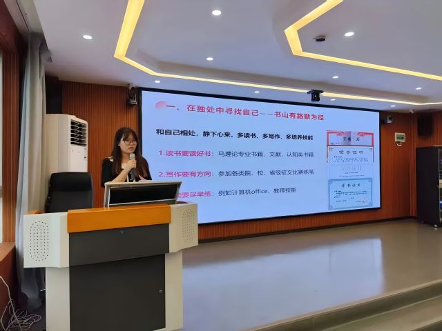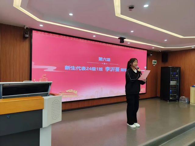 最后,新生代表2024级思想政治教育1班的李沂蔓从学习、品德、生活和人际交往四个方面入手,告诉同学们大学生活并不意味着懒散放纵,我们要绽放出属于自己的精彩。