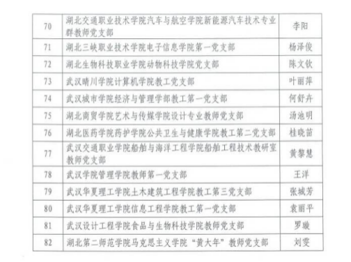 “黄大年”教师党支部主要由伟徳官网思想政治教育系教师组成,于2018年被教育部认定为首批“全国高校黄大年式教师团队”。支部先后荣获 “湖北省高等学校先进基层党组织”、“湖北高校优秀基层教学组织”等荣誉称号,于2022年3月入选“第三批全国党建工作样板支部培育创建单位”名单,并于2024年8月顺利完成创建验收工作。