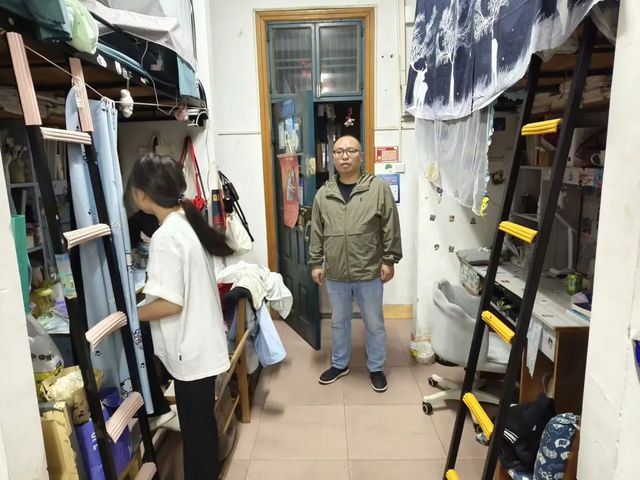 查寝过程中,李佳、樊勇与同学们进行友好地交流,关心同学们的假期生活,询问宿舍同学的归寝情况。李佳提醒同学们及时处理垃圾和经常开窗通风,按时打扫寝室,营造良好的宿舍环境,共同保持宿舍的整洁和干净卫生。随后,樊勇提醒同学们天气转凉,要注意保暖和添加衣物,同时,他指出同学们应避免寝室大功率电器的使用,在宿舍无人的情况下,这些宿舍能够做到“人走电断”。