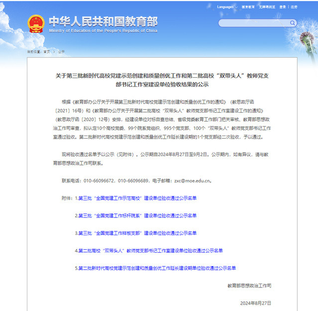 本网讯(通讯员叶道艳)近日,教育部思想政治工作司公布第三批新时代高校党建示范创建和质量创优工作和第二批高校“双带头人”教师党支部书记工作室建设单位验收结果伟徳官网“黄大年”教师党支部顺利通过验收。