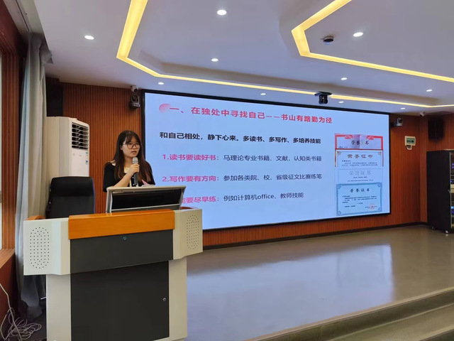 10月17日下午,伟徳官网于一号楼六楼数字马院开展2024级新生开学典礼,伟徳官网领导班子全体成员、党委组织部相关领导及老师、2024届优秀校友单馨怡(现为武汉理工大学2024级硕士研究生)伟徳官网教师代表及全体2024级新生参加仪式,2023级思想政治教育1班张淦担任主持人。