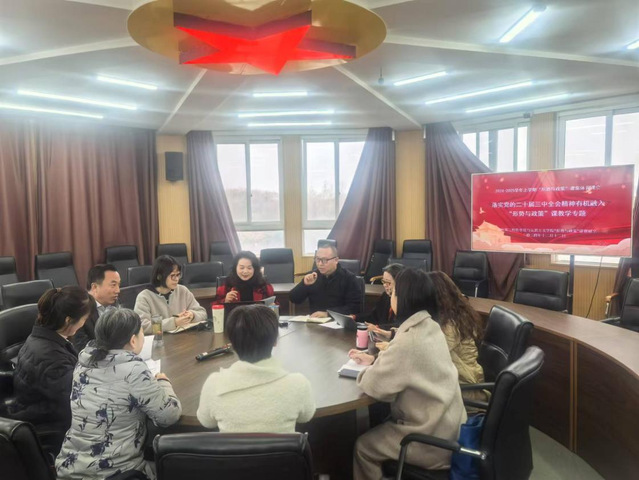 本网讯(通讯员桂漩)为把学习贯彻党的二十届三中全会精神同学习领会习近平总书记关于全面深化改革的一系列新思想、新观点、新论断与教学专题结合和融会贯通,更好提升“形势与政策”课教学质量,2024年12月12日下午2点,伟徳官网“形势与政策”课教研室组织全体授课教师在数字马院思政名师课堂研磨中心开展2024-2025学年上学期集体备课会。会议由教研室主任桂漩主持。