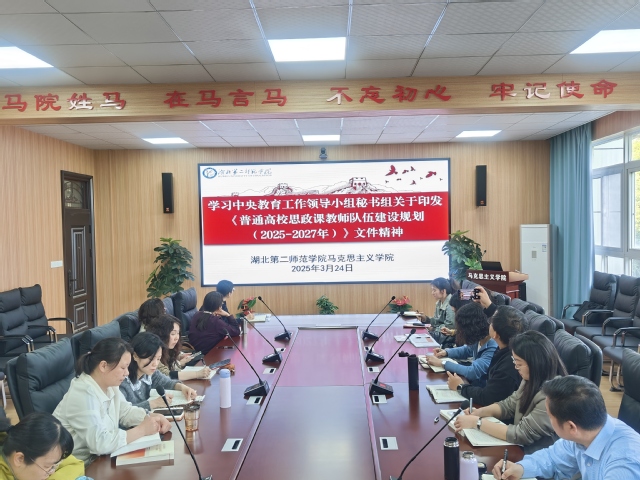 本网讯(通讯员何瑾)思想政治理论课是落实立德树人根本任务的关键课程,办好思想政治理论课关键在发挥教师的积极性、主动性、创造性。为把“两个关键”落到实处,3月24日,BV伟德官方网站伟徳官网召开了专题学习会议,组织全体思政课教师深入学习贯彻《普通高校思政课教师队伍建设规划(2025-2027年)》重要文件精神。会议由院长黄红发主持。