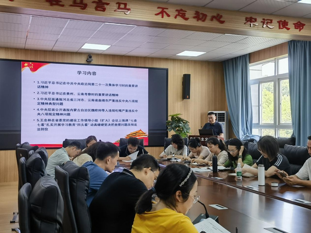 全体党员交纳7月党费后,在闫曼悦同志的带领下,全体党员诵读《中国共产党章程》第八章第四十六条。随后,朱波同志领学了习近平总书记在中共中央政治局第二十一次集体学习时的重要讲话精神;习近平总书记在贵州、云南考察时的重要讲话精神;中央层面通报河北省三河市、云南省曲靖市严重违反中央八项规定精神典型问题;中央层面公开通报内蒙古自治区魏栓师等人违规吃喝严重违反中央八项规定精神问题;王忠林在省委党的建设工作领导小组(扩大)会议上强调“七查七看”扎实开展学习教育“回头看” 动真碰硬坚决把查摆问题改彻底治到位;湖北省《关于6起违规吃喝典型问题的通报》等严重违反中央八项规定精神问题的通报;云南省曲靖市统计造假、政治生态恶化的典型案例;《党员、公职人员酒驾醉驾案件规范量纪指导意见及取证指引》等相关内容。并向支部党员传达党员干部不得违规打牌、赌博,坚决做到“八个严禁”;各级党员干部一定要充分认识违规打牌、赌博的严重危害性,决不组织和参与任何形式的相关活动的明确要求。