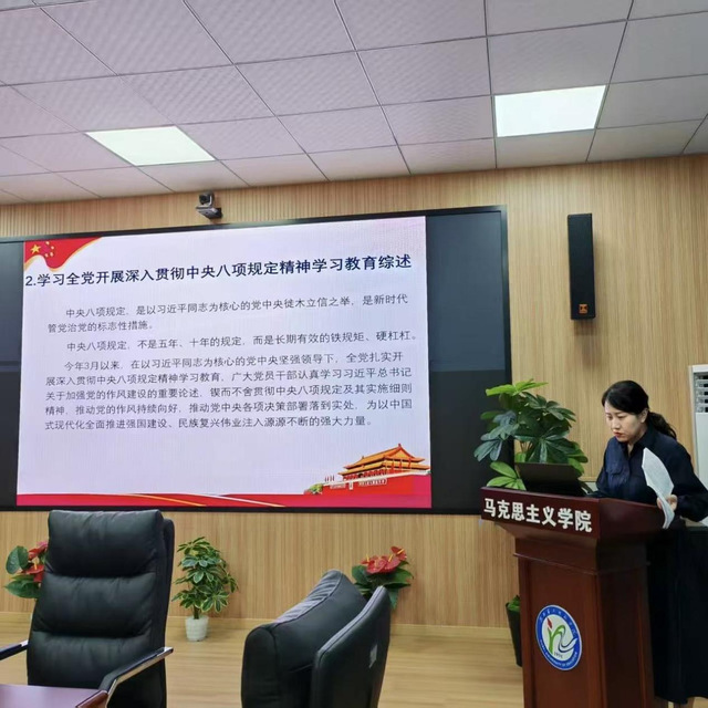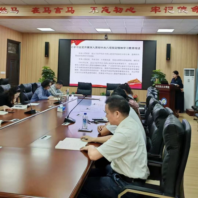 朱波同志带领全体党员诵读党章;随后集中学习习近平总书记重要论述和相关文件,推动作风建设、理论武装与法治学习常态长效。集中学习环节由闫曼悦老师主持,内容涵盖中央八项规定精神、抗战胜利八十周年讲话精神、党校条例、纪律案例和数据安全法规,做到学原文、悟原理、重落实。交流中,刘志来老师强调,伟大抗战精神是民族尊严的见证,也是青年坚定信念、勇担使命的重要资源,应贯穿课堂与实践育人全过程。