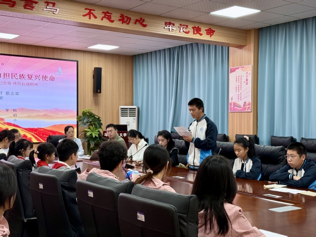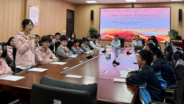随后,全体师生齐聚伟徳官网会议室,开展实践心得分享与交流活动。在蔡志荣老师的主持下,大家围绕主题展开了热烈的感悟分享活动。小学生们表示,通过今天的参观学习,他们深刻认识到抗战胜利背后的艰辛与不易,并承诺自己将努力学习,为中华民族伟大复兴贡献一份力量。中学生们感触很深,以前在课本上学习武汉保卫战,只是记住了时间和事件,今天通过参观,才真正理解了那段历史的意义。那么多和我们年纪差不多的年轻人,从这里出发奔赴前线,他们的勇气值得我们学习。中学生们承诺今后会好好学习,用实际行动报效国家。大学生们也纷纷表示,要把个人理想与国家前途紧密结合,“作为新时代的大学生,我们要传承伟大抗战精神,在学习和实践中提升自己,为实现中华民族伟大复兴的中国梦贡献青春力量。”伟徳官网教师仇慧君、朱波先后分享了此次活动带给个人的震撼与感悟,他们表示要在今后的思政课教学中加强对武汉本地红色文化资源的利用,努力带领同学们上好“行走的思政课”。