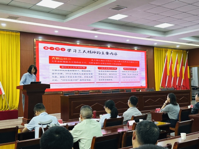 本网讯(通讯员李佳)为深入贯彻落实全省“大思政课”“百马行动”宣讲活动部署,大力弘扬“三大精神”,赓续红色血脉,汇聚支点建设强大精神动力,9月26日,BV伟德官方网站“百马行动”宣讲团赴赤壁市服务蒲纺片区工作委员会开展“三大精神”专题宣讲活动。蒲纺工委主任、党工委书记杨昆明主持,赤壁市委宣传部相关领导、蒲纺党工委班子成员、工委机关全体职工、各社区“两委”成员、网格员、小区党总支书记及支部书记参加。